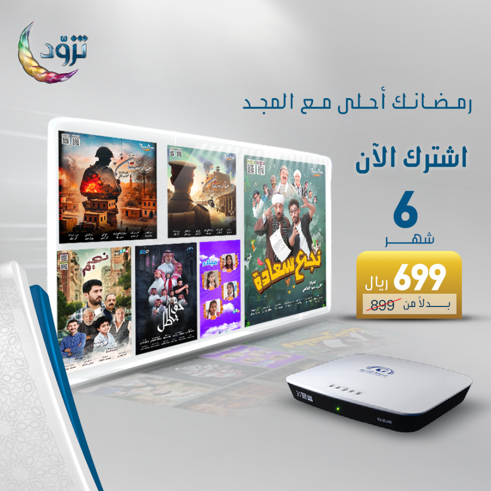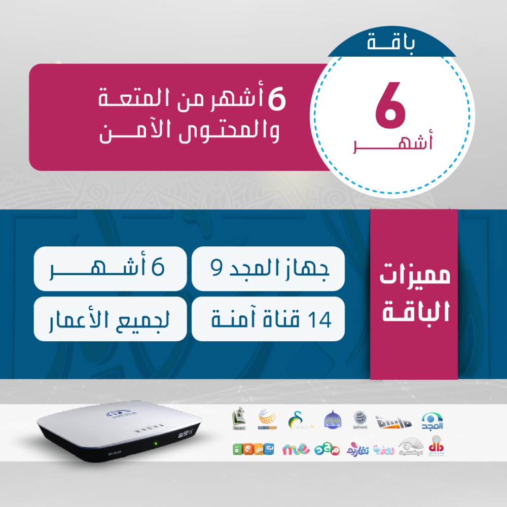 المنتج يشمل جهاز المجد 9 الجديد باللإضافة الى باقة الأجاويد إشتراك 6 شهر.