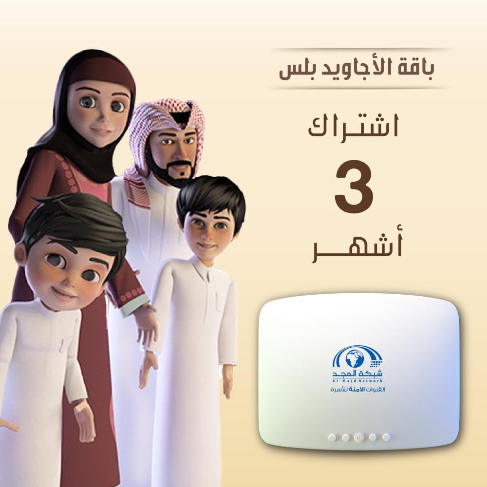 بالإضافة الى باقة الأجاويد بلس اشتراك 3 شهر لتشاهد جميع قنوات المجد ( المجد العامة - ماسة - روضة - بسمة - مجد للأطفال - تغاريد - العلمية - الإخبارية - الوثائقية - الطبيعية - السنة النبوية - القرآن الكريم - دال ) بالإضافة الى قناة الأجاويد الجديدة مع أكثر من 40 قناة هادفة.