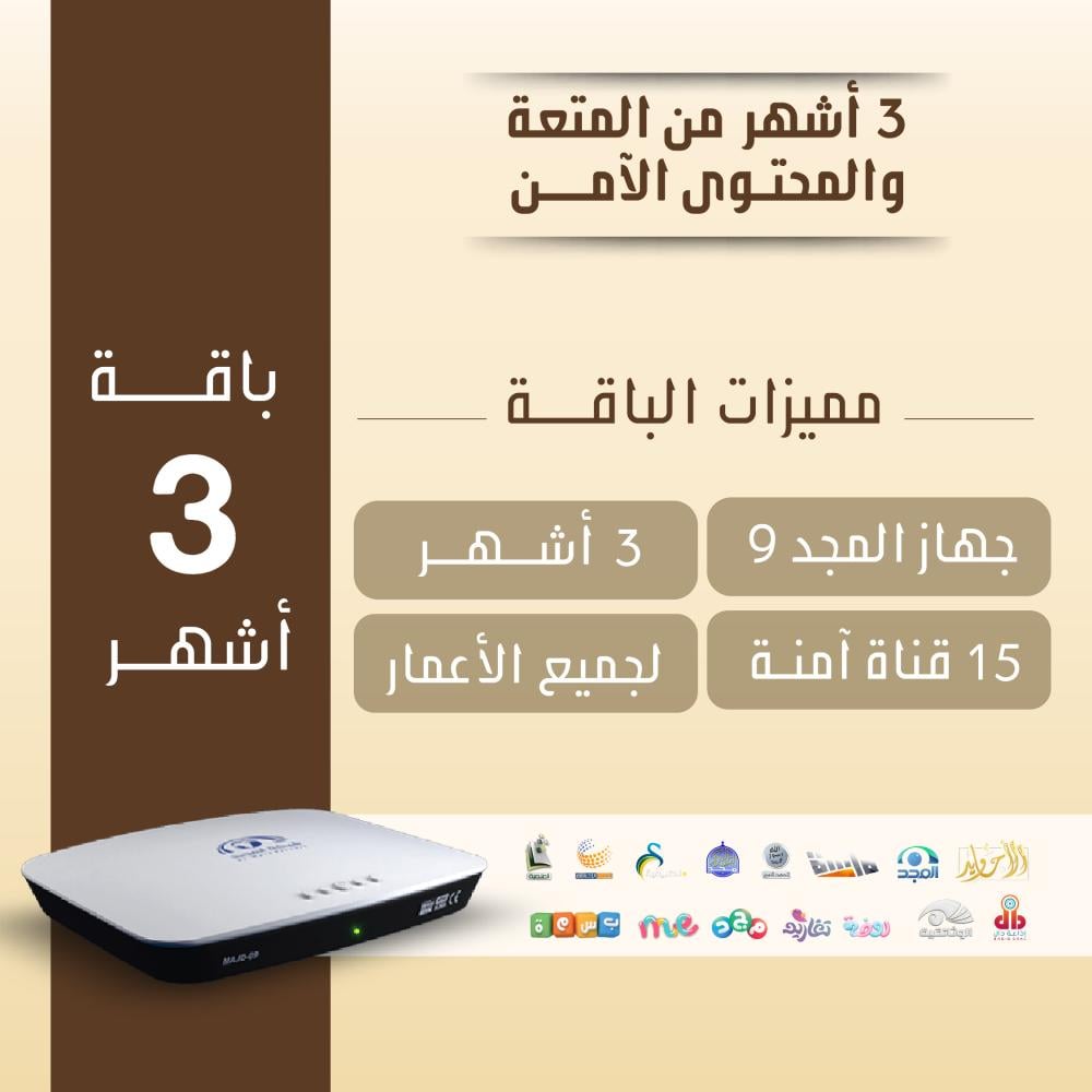 المنتج يشمل جهاز المجد 9 الجديد بالإضافة الى اشتراك 24 شهر لباقة الأجاويد بلس.